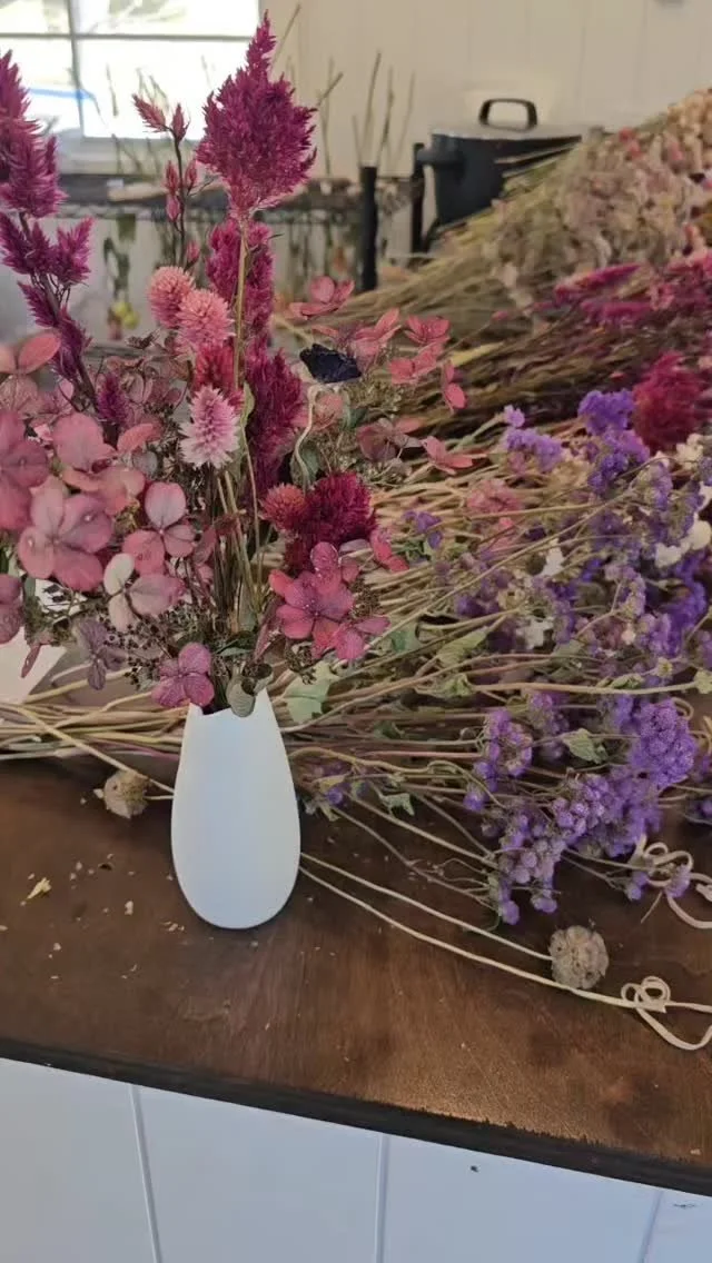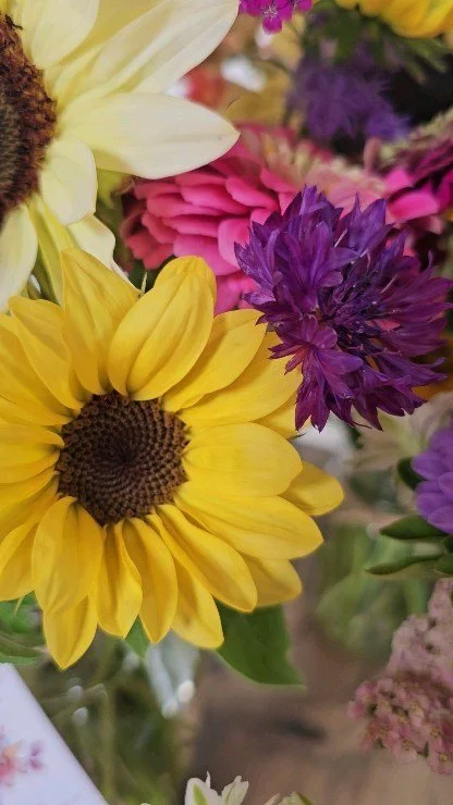 We offer seasonal flowers that are cut fresh each day. ALL flowers are grown right here on the “farm.” We also have soy candles, and other fun and local finds.